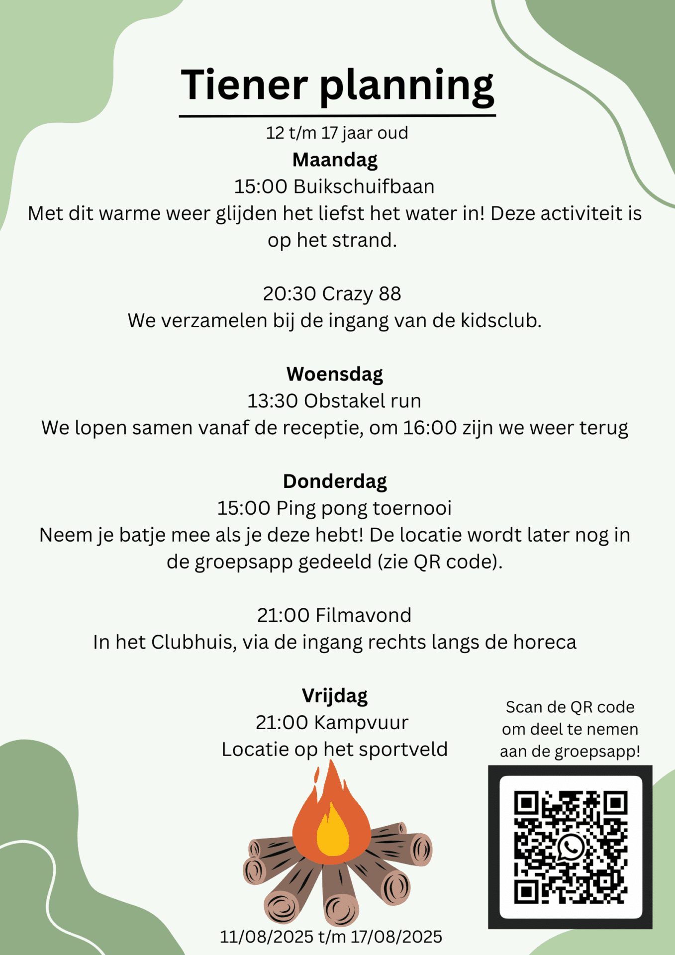 We weten dat tieners vaak een beetje worden vergeten op campings. Bij ons zéker niet. We gaan graag met ze in gesprek om te horen waar ze zin in hebben. Zo organiseren we bijvoorbeeld sporttoernooien, filmavonden en schuimparties.